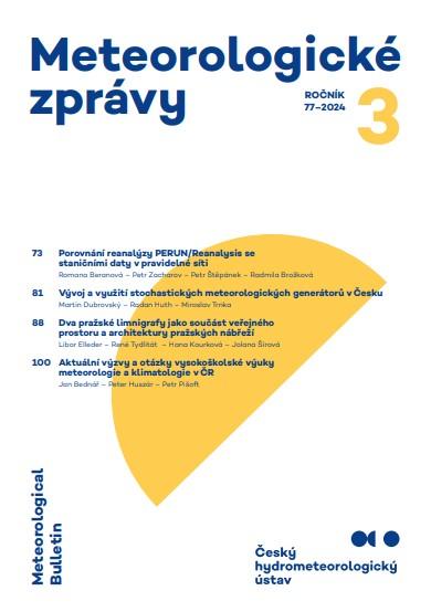 Objednat emailemNakladatelská činnost ČHMU se zaměřuje na produkci tvorbu publikací s odborným zaměřením v oborech kvalita ovzduší, hydrologie, jakost vody, klimatologie a meteorologie. Zahrnuje také vydávání a distribuci odborného časopisu. A dále publikuje odborný časopis Meteorologické zprávy.