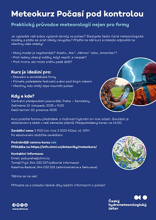 Úsek meteorologie a klimatologie Českého hydrometeorologického ústavu zveřejňuje elektronickou publikaci „Klimatologická ročenka České republiky 2024”, která přináší hodnocení základních klimatologických charakteristik a popis těch nejzajímavějších událostí roku z hlediska počasí a klimatologického hodnocení na území České republiky v roce 2024. Čtěte více (dokument pdf). Ke stažení (dokument docx). |