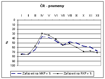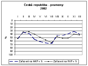 Jak je zřejmé ze souhrnných grafů, výchozí stav zásob podzemních vod v poříčních zónách byl výrazně vyšší, než v ploše mimo tyto zóny. Hladiny podzemních vod vycházejí v lednu 2003 v průměru z kvantilů 22 % u MKP a 19 % RKP, vydatnosti pramenů přibližně z 37 % kvantilu obou užívaných srovnání. Hladiny ve srovnání s DP jsou 0,39 m nad průměrem a 0,36 m nad MDP. Vydatnosti v lednu ve stejném porovnání vystoupily nad DP o 30 % a 33 % nad MDP.
