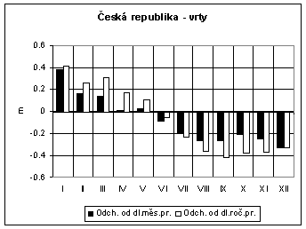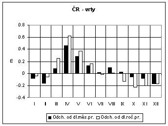 grafy odchylek od dlouhodobých průměrů, které zahrnují: