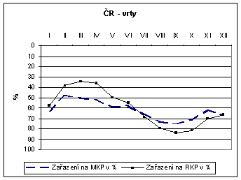Kvantil dlouhodobé křivky překročení vyjadřuje, jak velké procento naměřených hodnot ve srovnávacím období je vyšší, než odpovídající naměřená hodnota v roce 2006. Např. stav v lednu 2005 odpovídá obvykle kvantilu 20 %MKP, tzn. že pouze 20 % hodnot naměřených ve všech lednech srovnávacího období 1971-1990 bylo vyšších než hodnoty z ledna 2006 (50% tedy znamená průměrnou hodnotu).