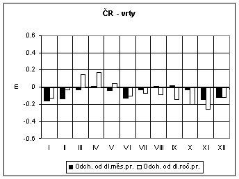 Režim podzemních vod je srovnáván s obdobím 1971 – 1990 a je dokumentován: