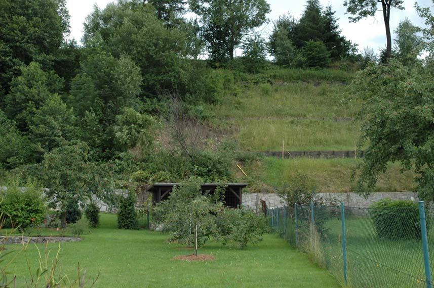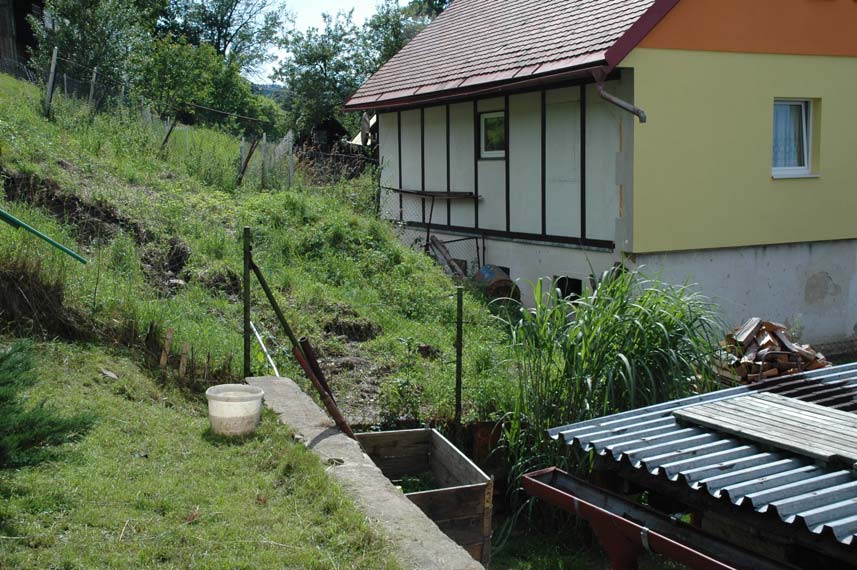Pohled na sesuvné území 7 Česká Ves pod domem č. p. 171.