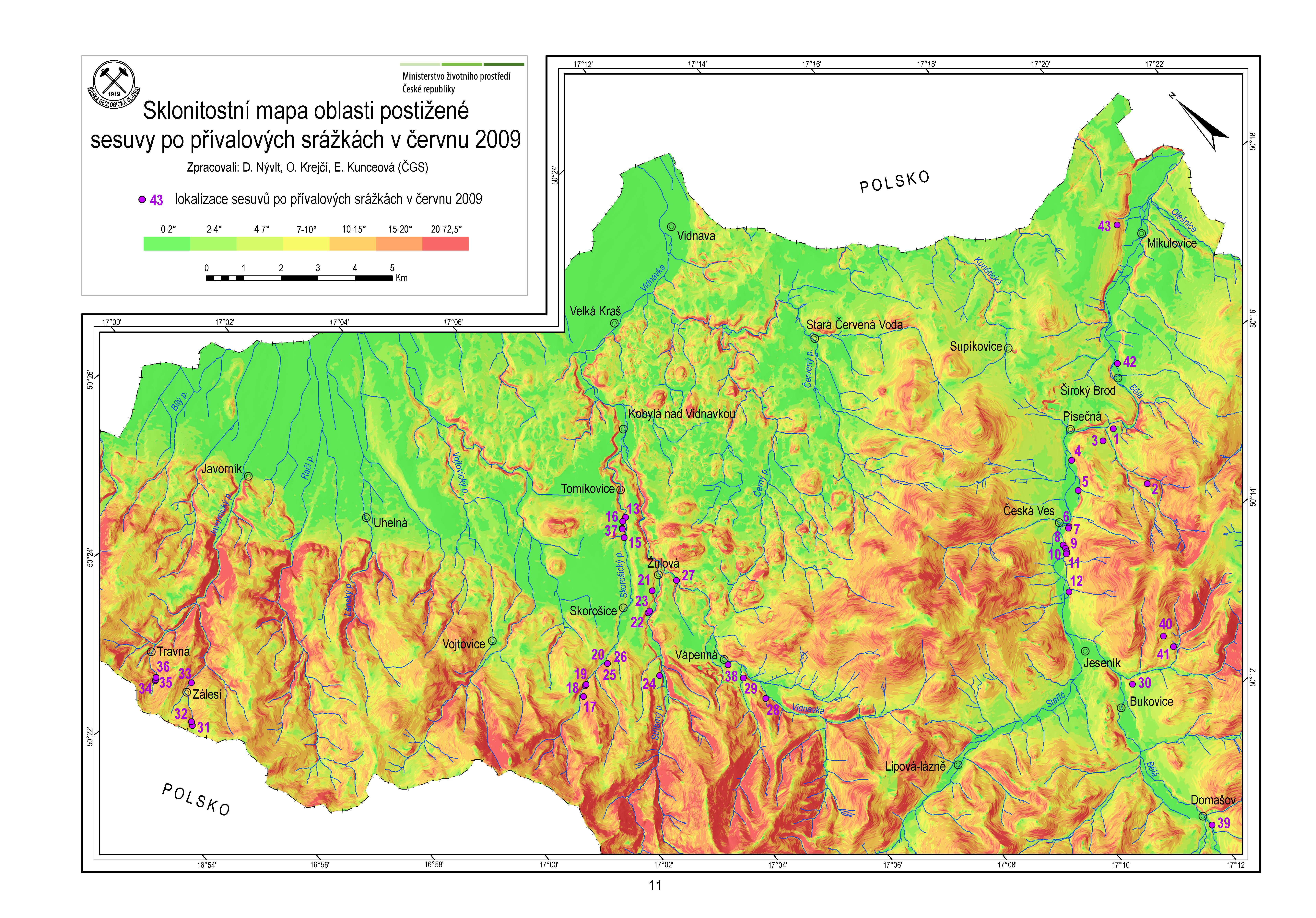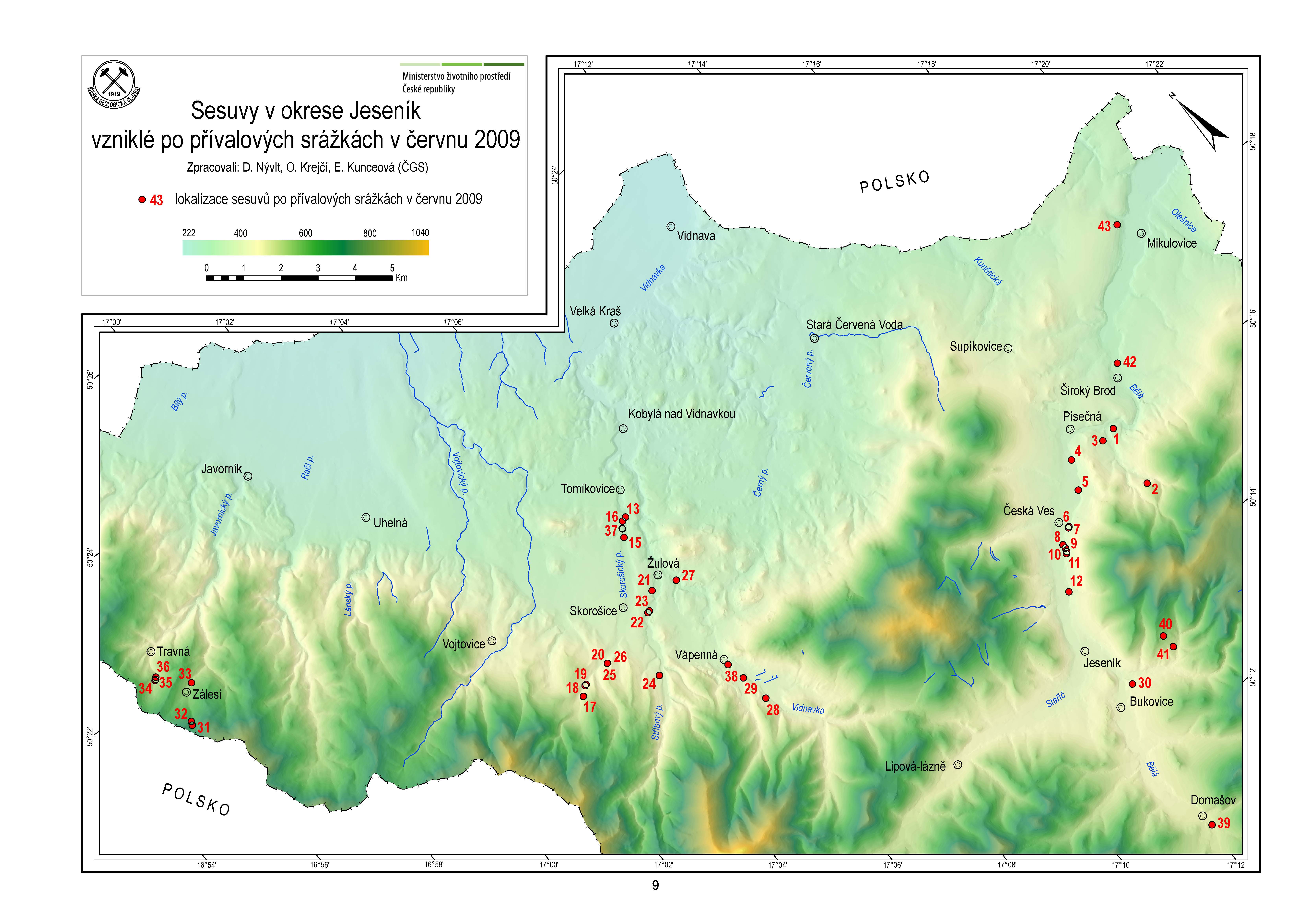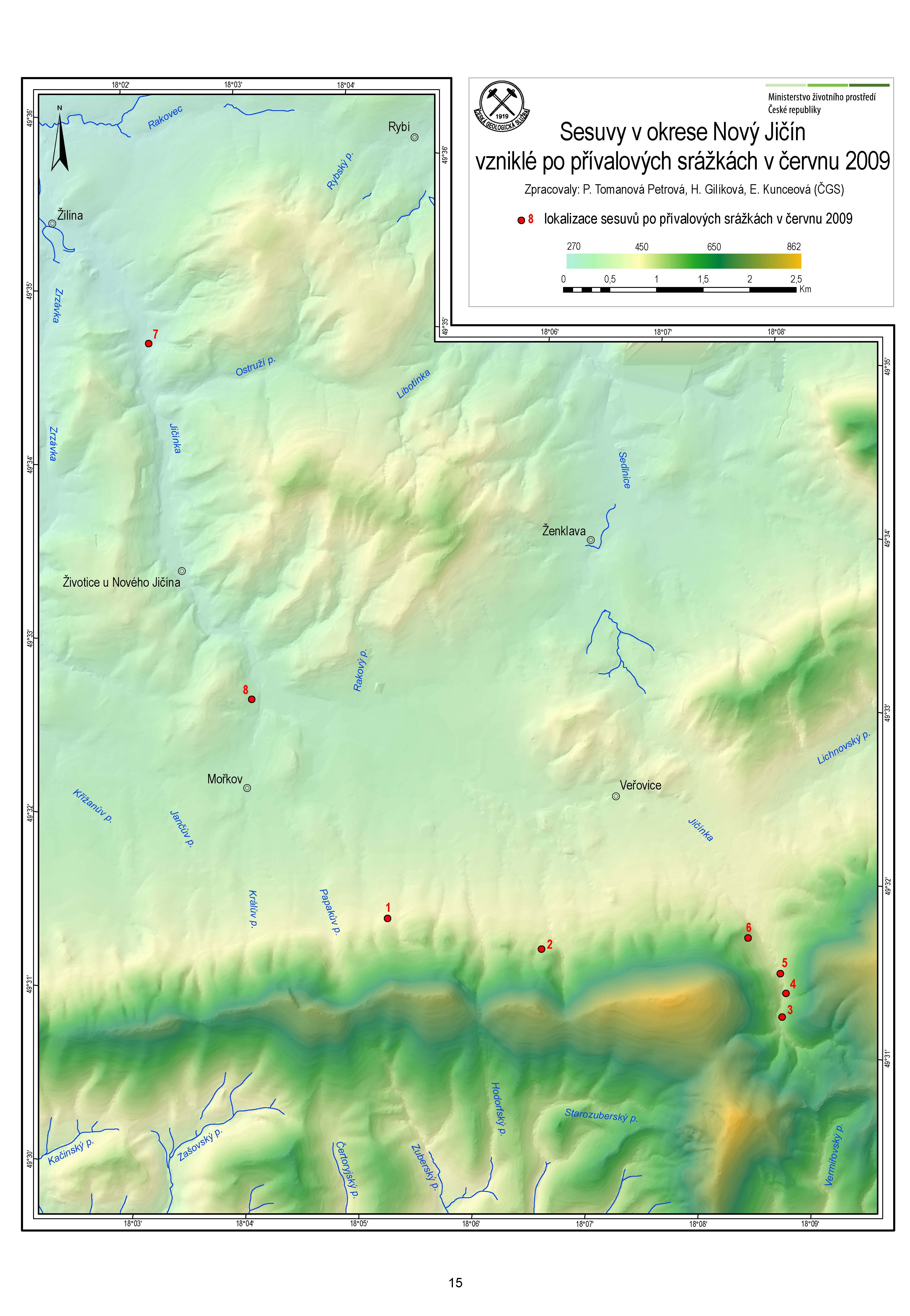 lokalizace sesuvů vzniklých po přívalových srážkách v červnu 2009 v okrese Nový