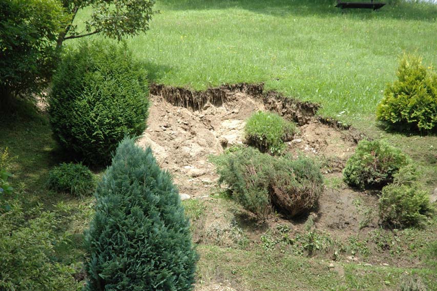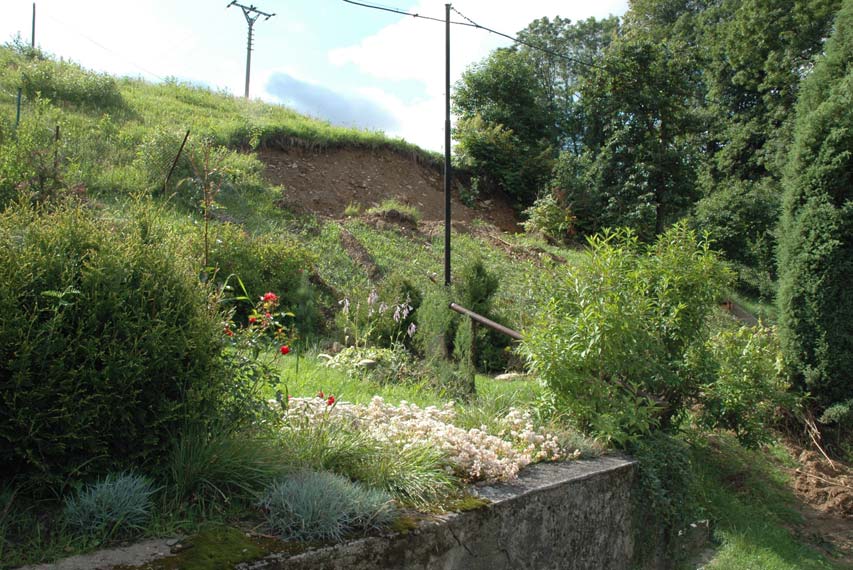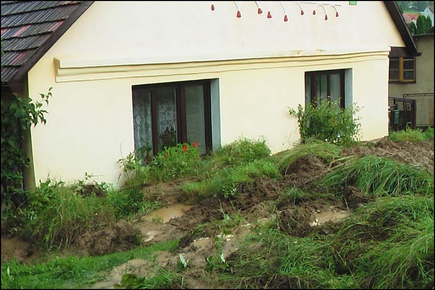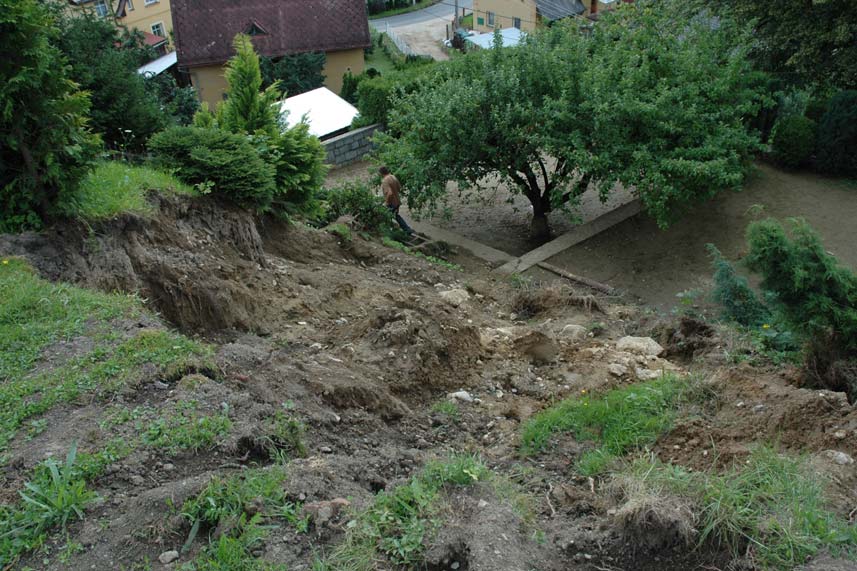 Sesuvné území na zahradě v Žilině u Nového Jičína.