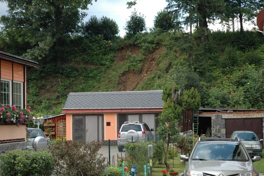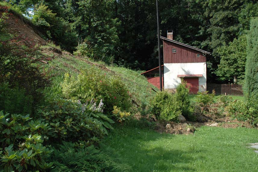 Sesuvné území 11 Česká Ves. Potenciální frontální sesuv za domem č. p. Úzká 4.