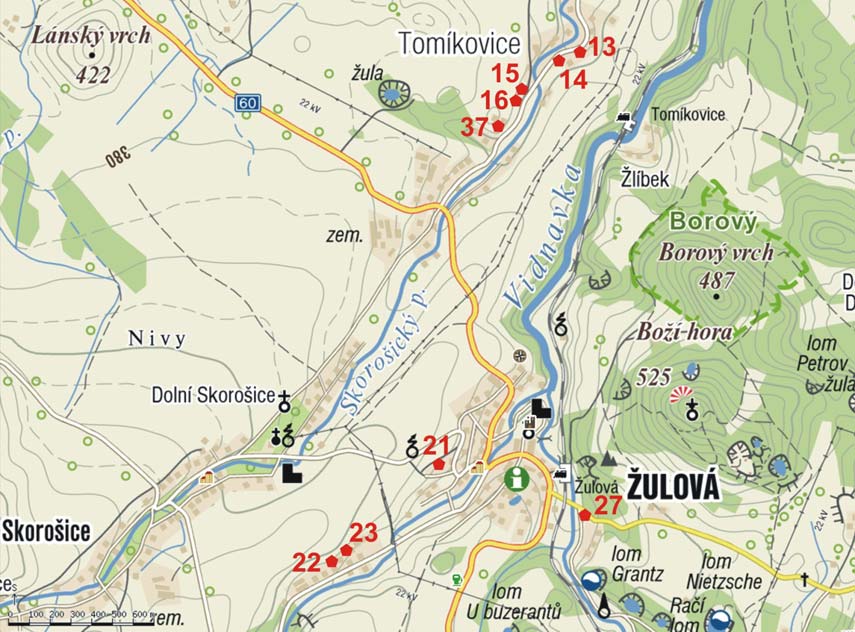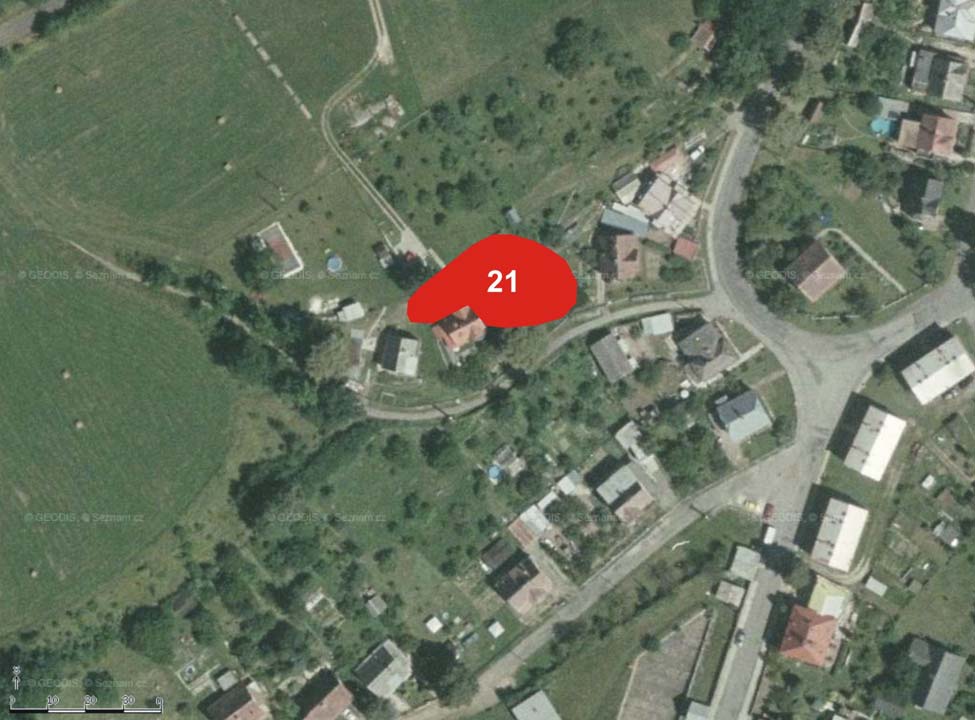 Lokalizace sesuvného území 21 Žulová (Podklad Seznam/Mapy).
