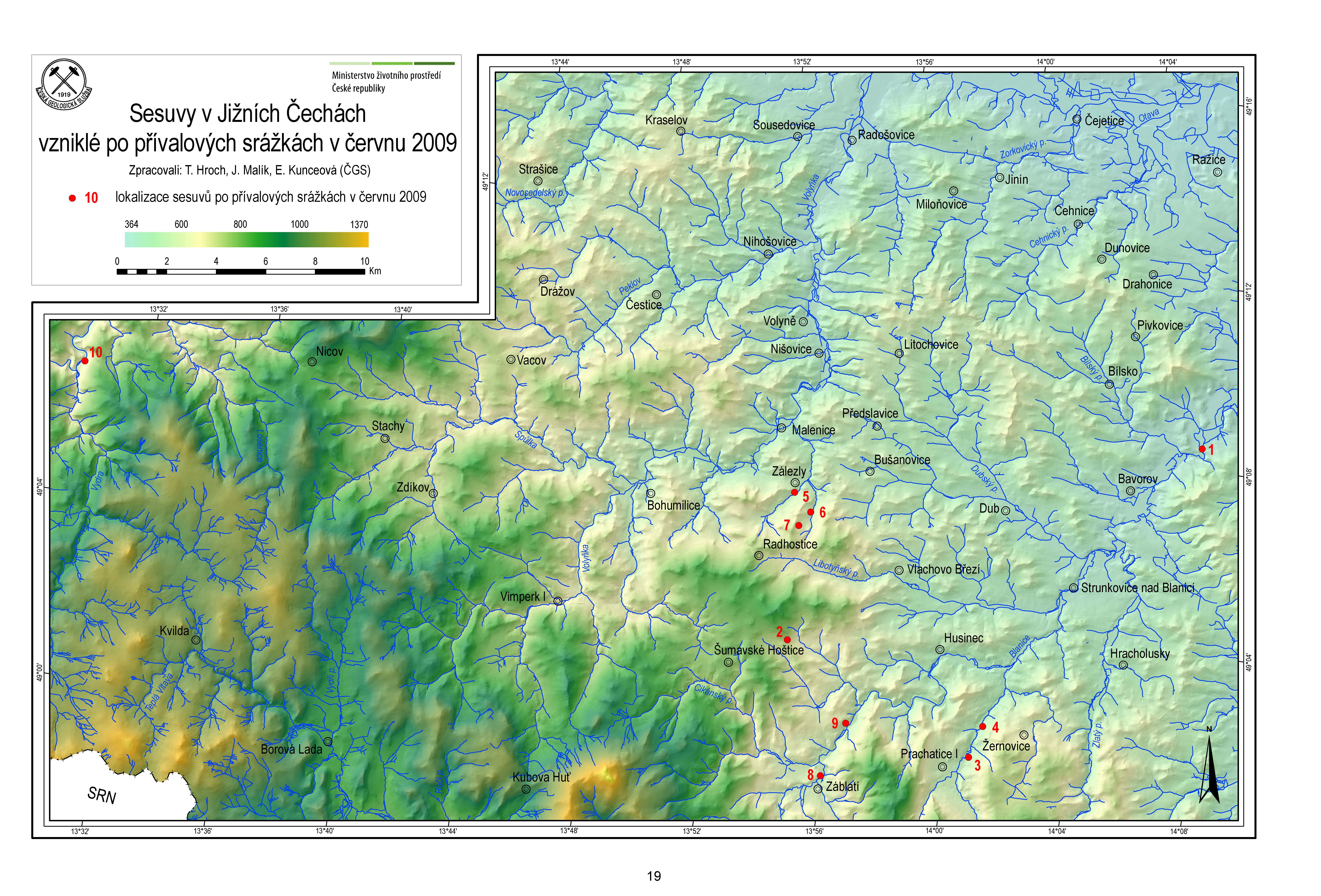 Tab. 3: Přehled a lokalizace sesuvů vzniklých po přívalových srážkách v červnu 2009 v Jižních Čechách