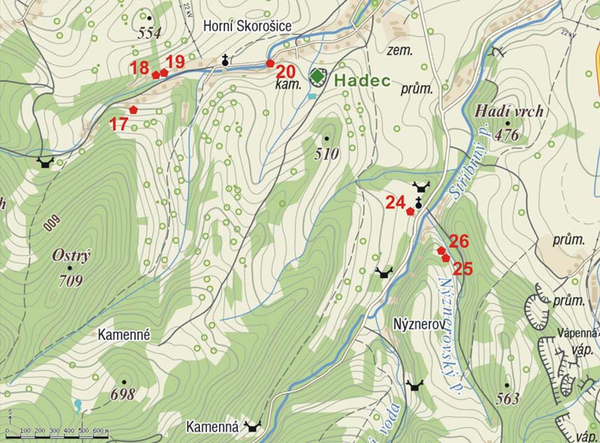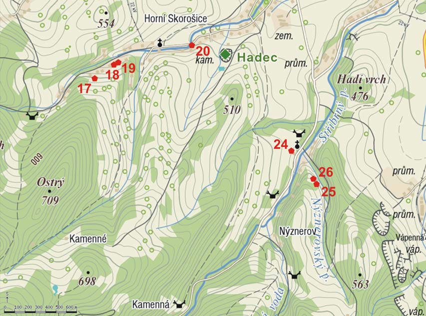 Lokalizace sesuvného území 17 Skorošice (Podklad Seznam/Mapy).