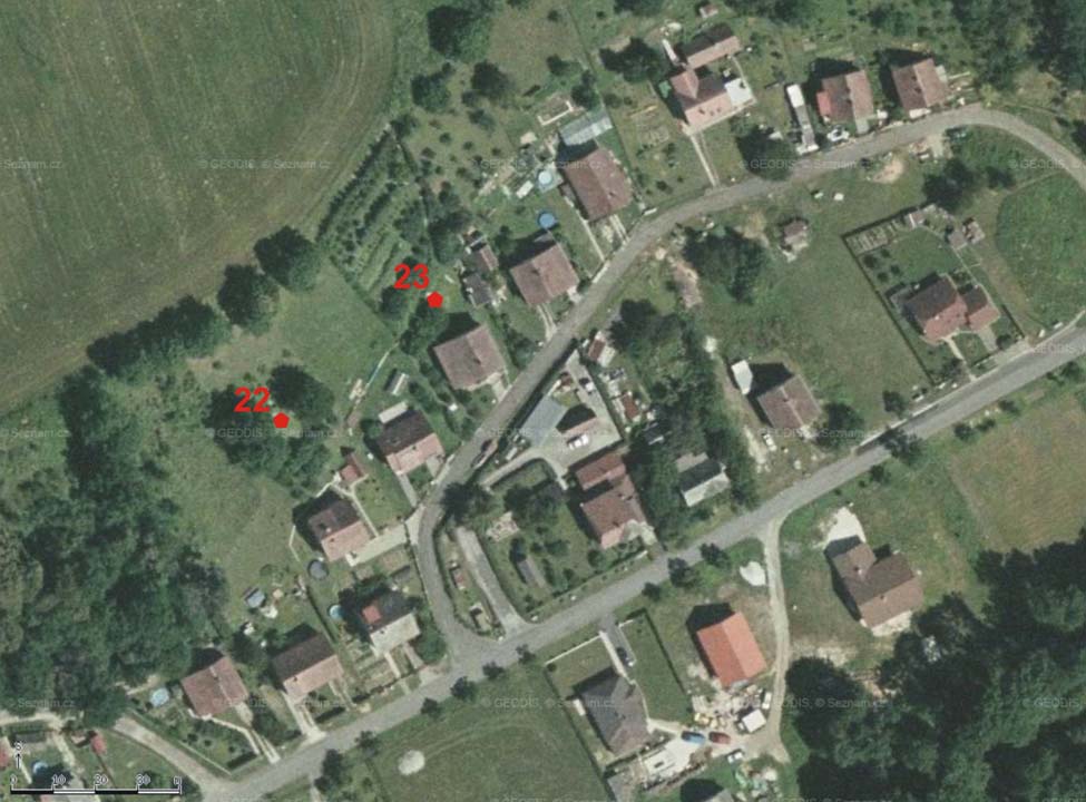 Lokalizace sesuvného území 23 Skorošice (Podklad Seznam/Mapy).