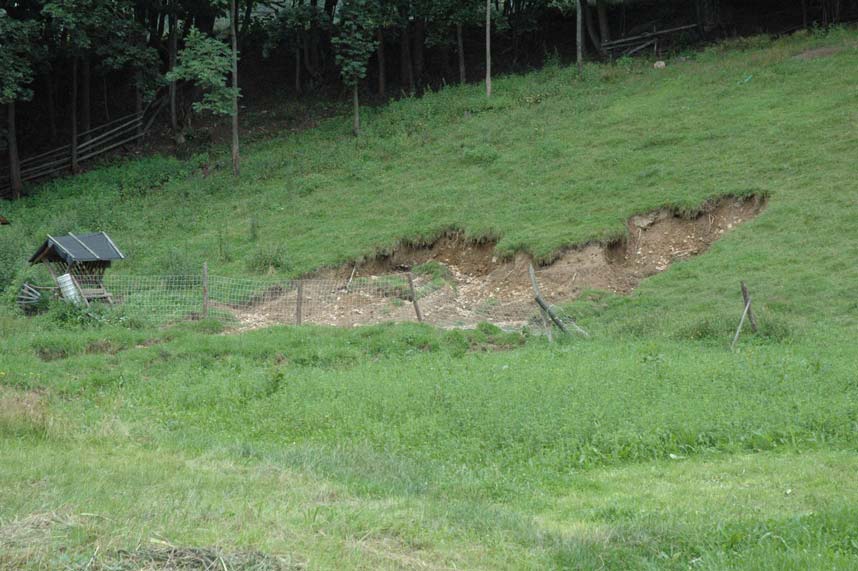Pohled na odlučnou část sesuvného území 7 Česká Ves, 8. 7. 2009.
