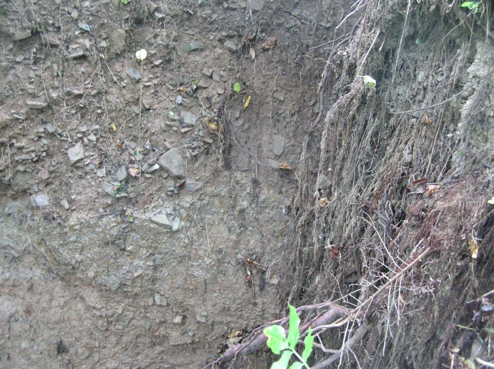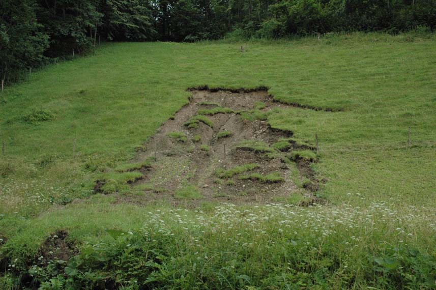 Detail odlučné hrany sesuvu 38 Vápenná.