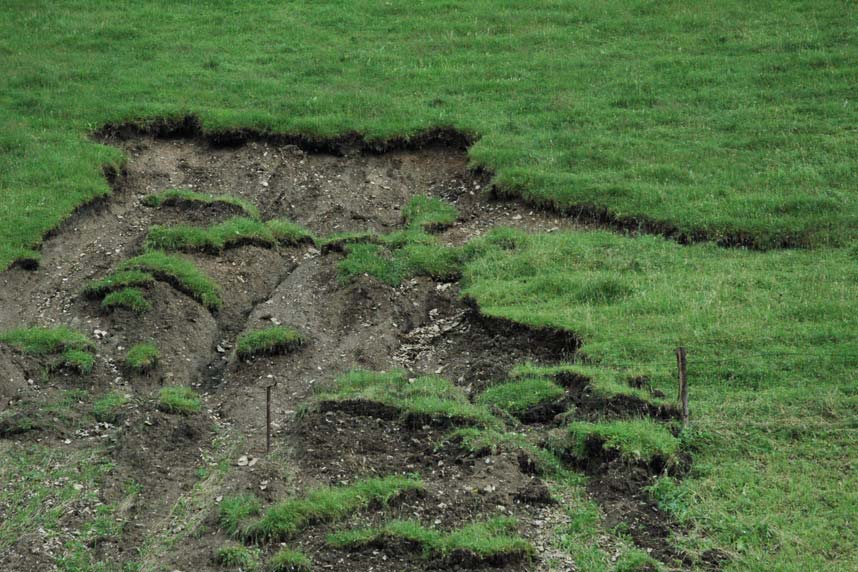 Vytváření zátrhů (odlučné oblasti) bez zřetelného laterálního posunutí.