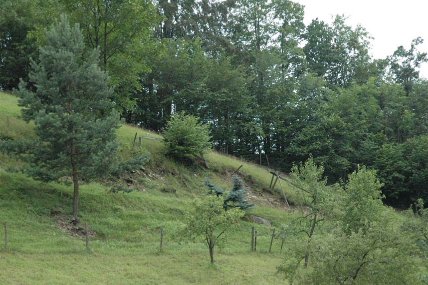 Celkový pohled na sesuv u lesní cesty j. od Veřovic.