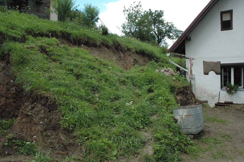 Sesuv 32 Javorník, Zálesí, ohrožený dům č. p. 29 stojící u odlučné hrany sesuvu.