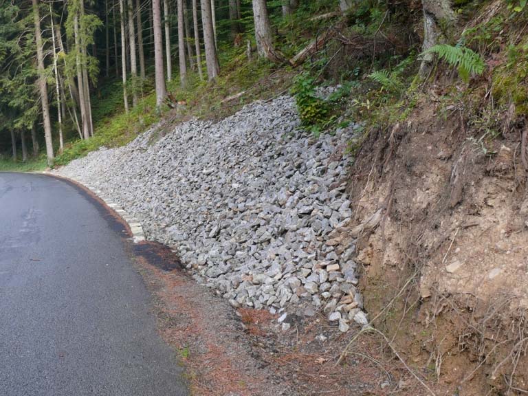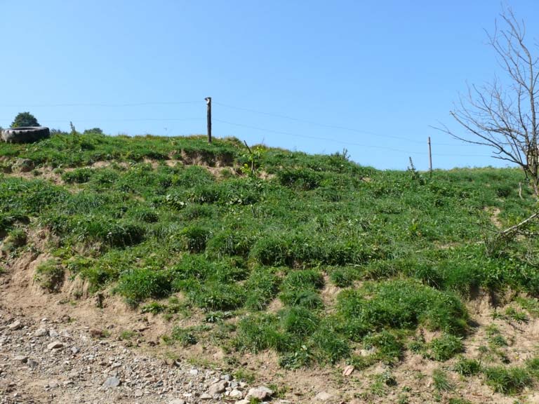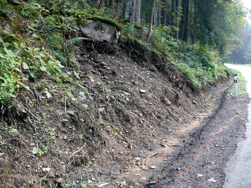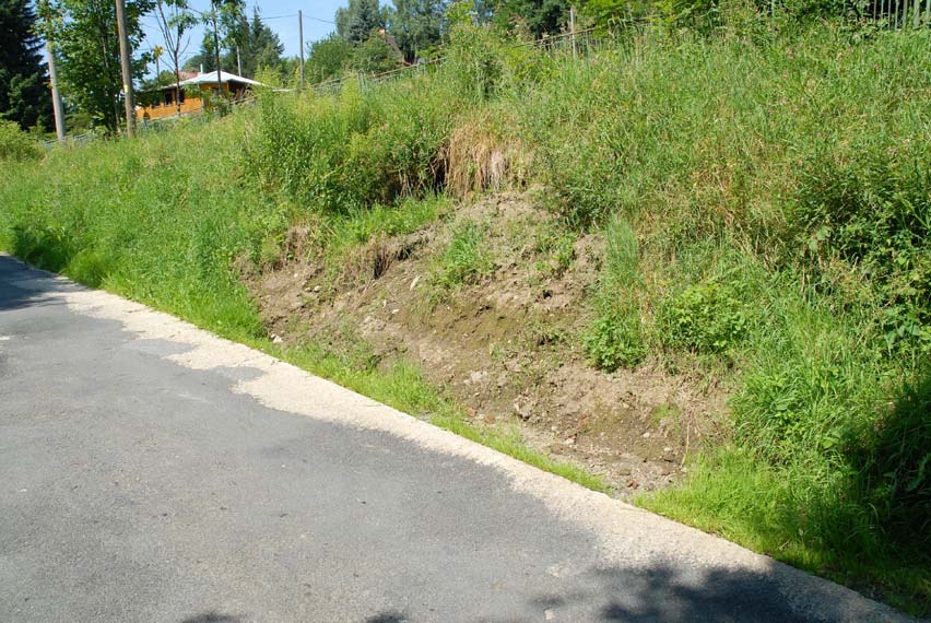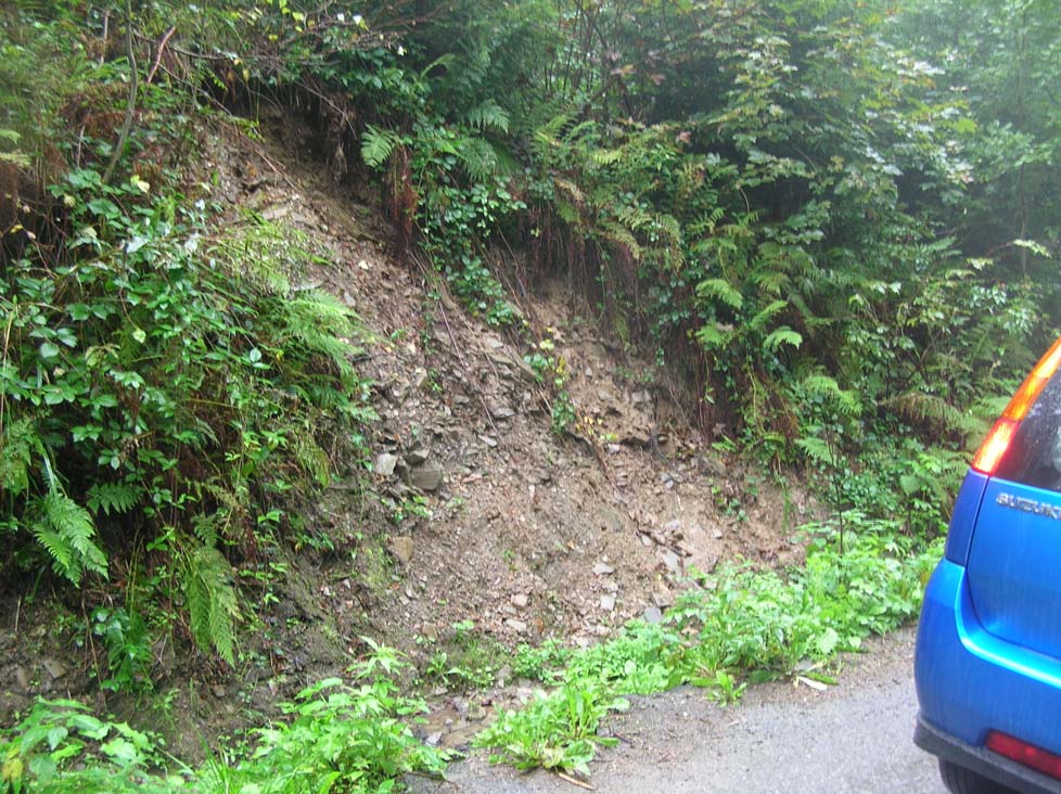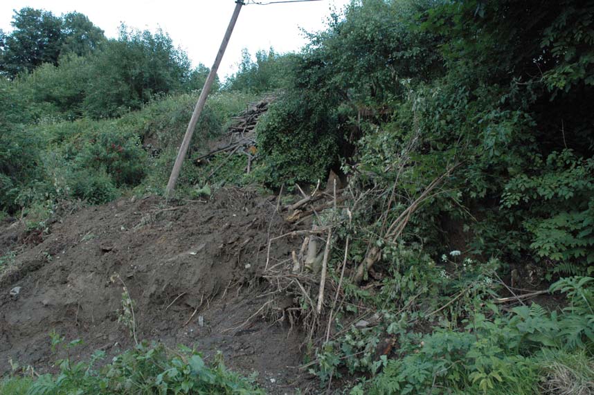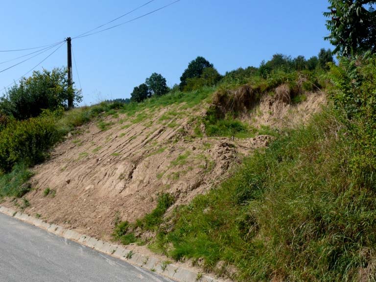 Pohled na svah nad silnicí nad odlučnou hranou sesuv 5 Česká Ves