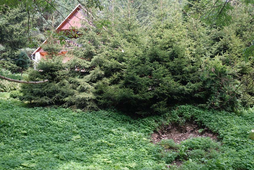 Pohled na sesuv 32 Javorník, Zálesí pod domem č. p. 29.