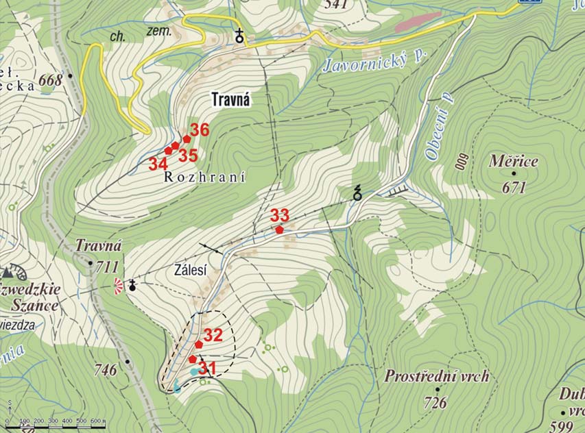 Lokalizace sesuvu 34 Javorník, Travná (podle Seznam/Mapy).