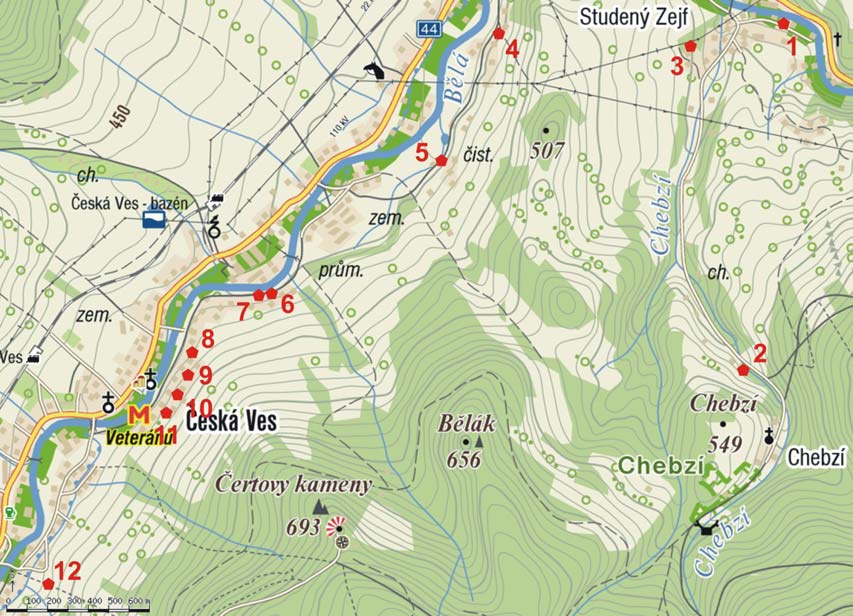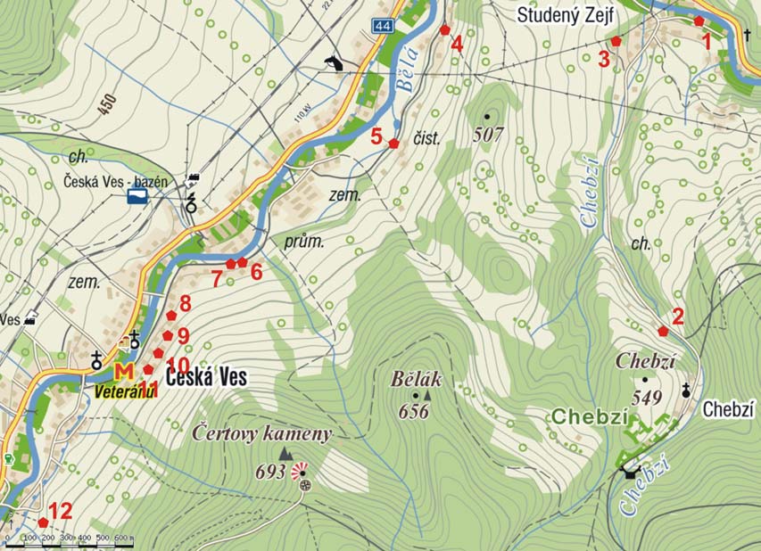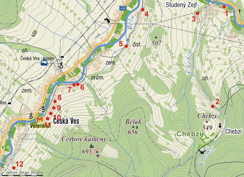 Lokalizace sesuvného území 12 Česká Ves (Podklad Seznam/Mapy).