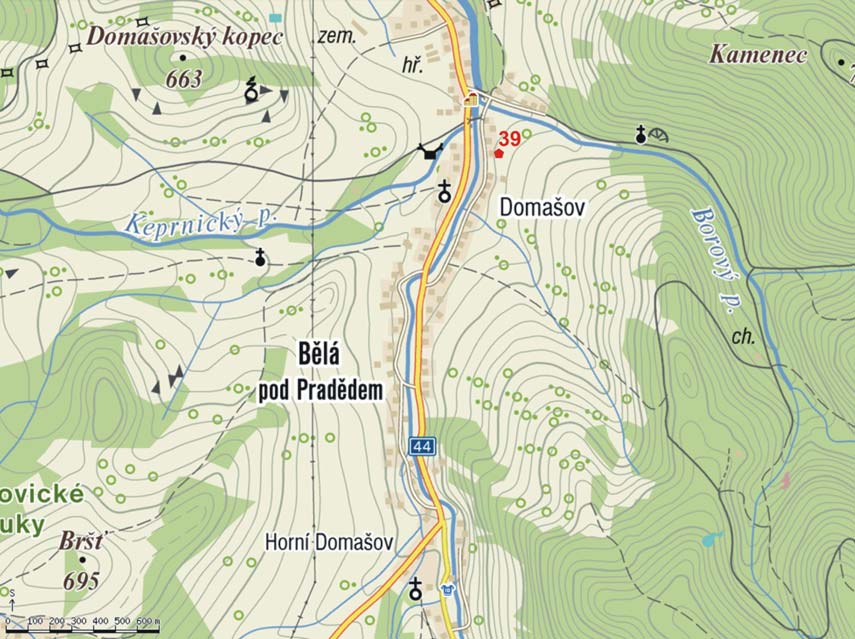 Lokalizace sesuvu 39 Bělá-Domašov (podle Seznam/Mapy).