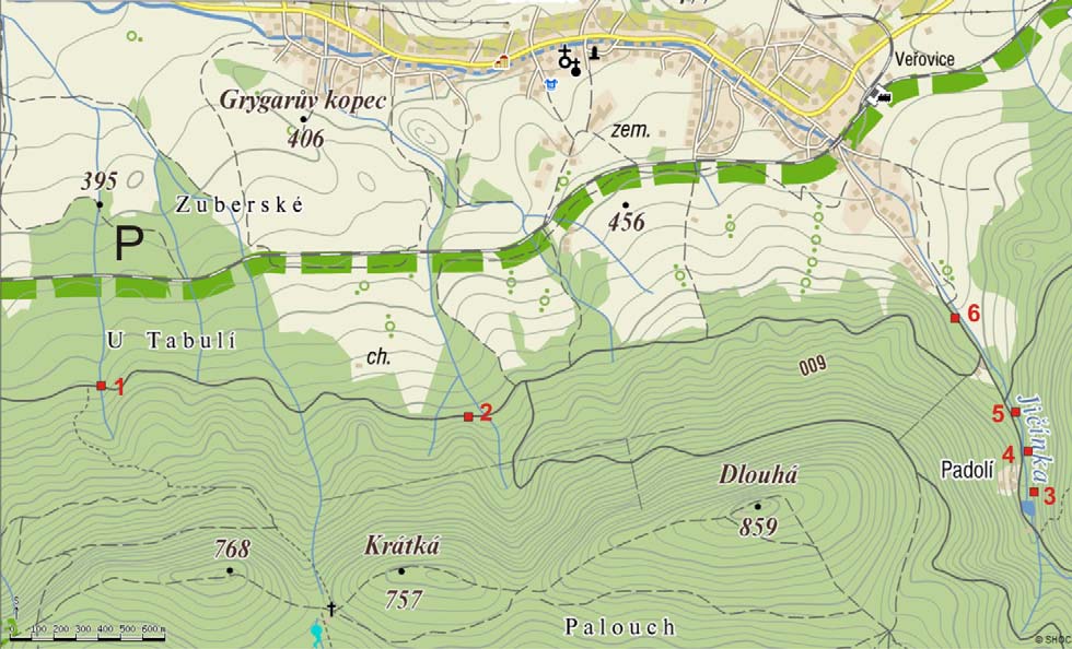 Lokalizace sesuvu Veřovice, (d. b. 6); foto Seznam/Mapy.