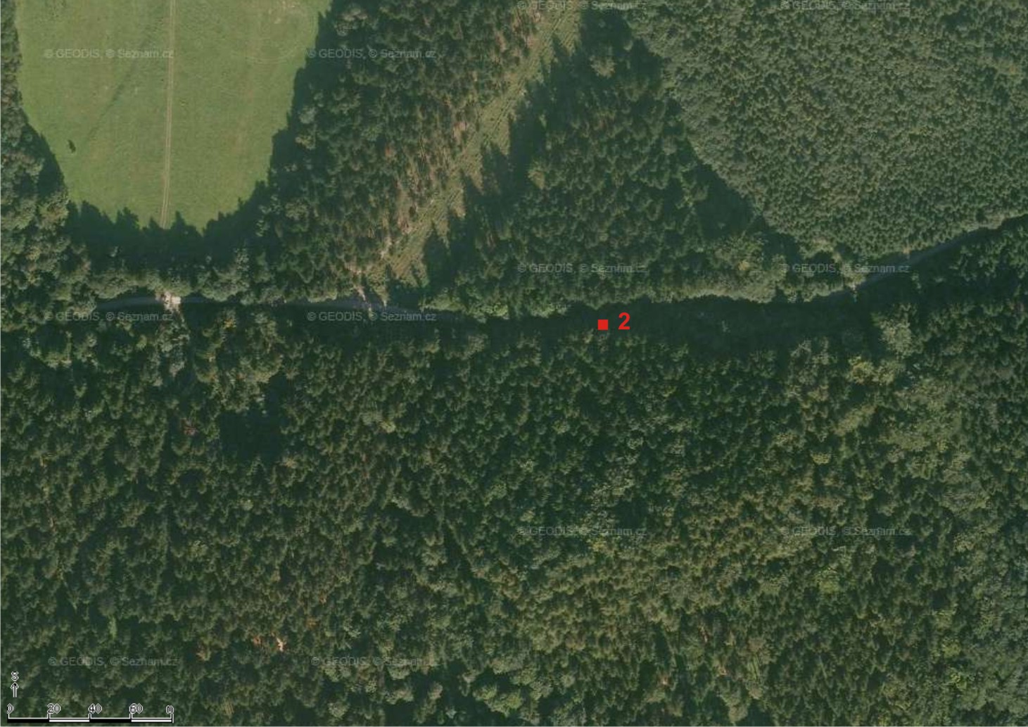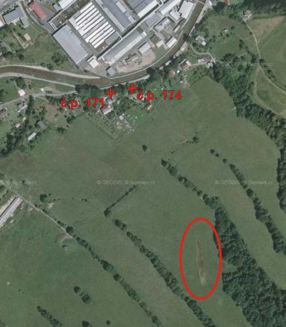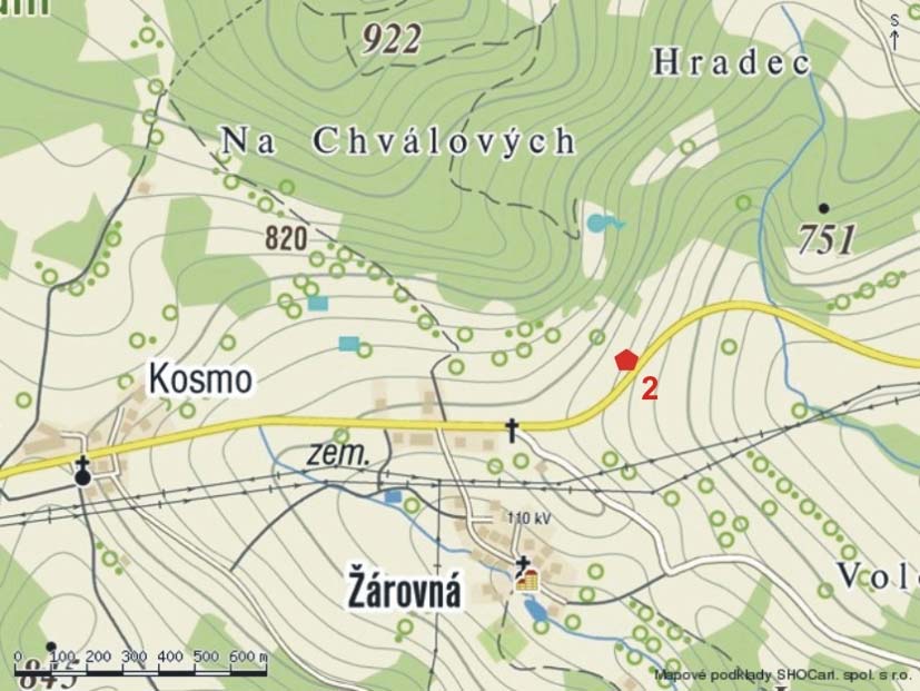 Lokalizace sesuvného území 2 Žárovná (Foto Seznam/Mapy).