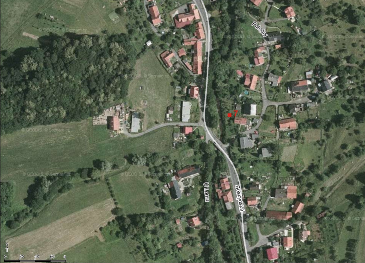 Lokalizace sesuvu Veřovice, (d. b. 7); foto Seznam/Mapy.