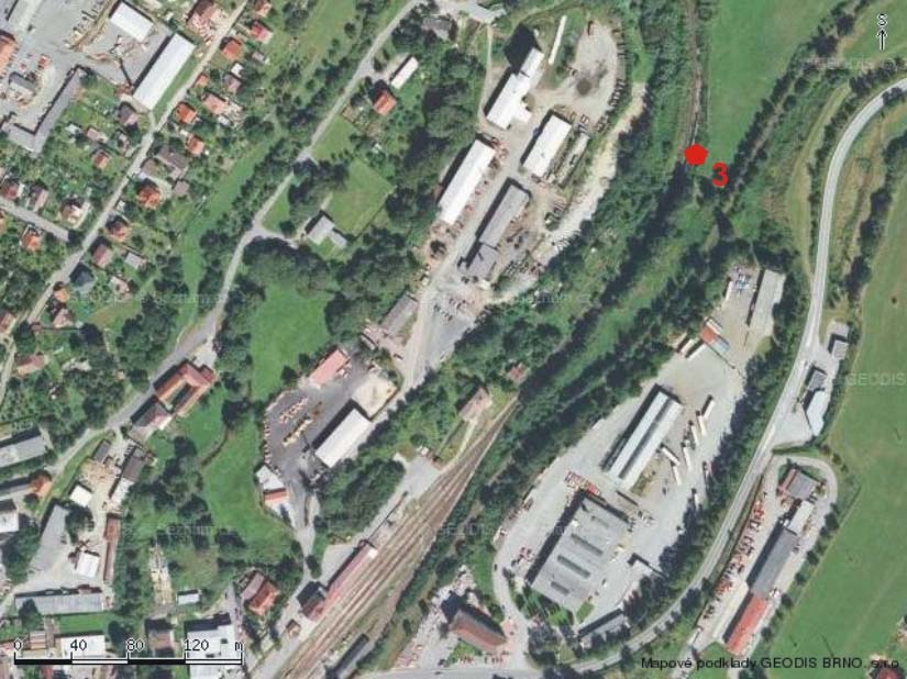 Lokalizace sesuvu Veřovice, Padolí (d. b. 3); foto Seznam/Mapy.