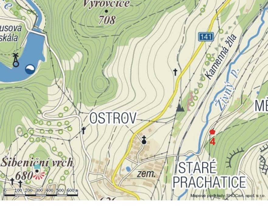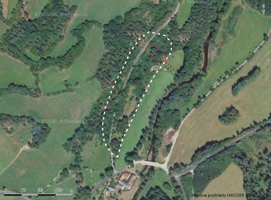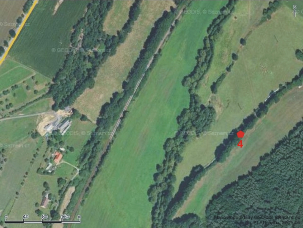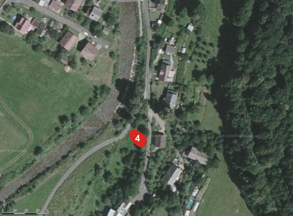 Lokalizace sesuvného území 4 Městská Lhotka (Podklad Seznam/Mapy).