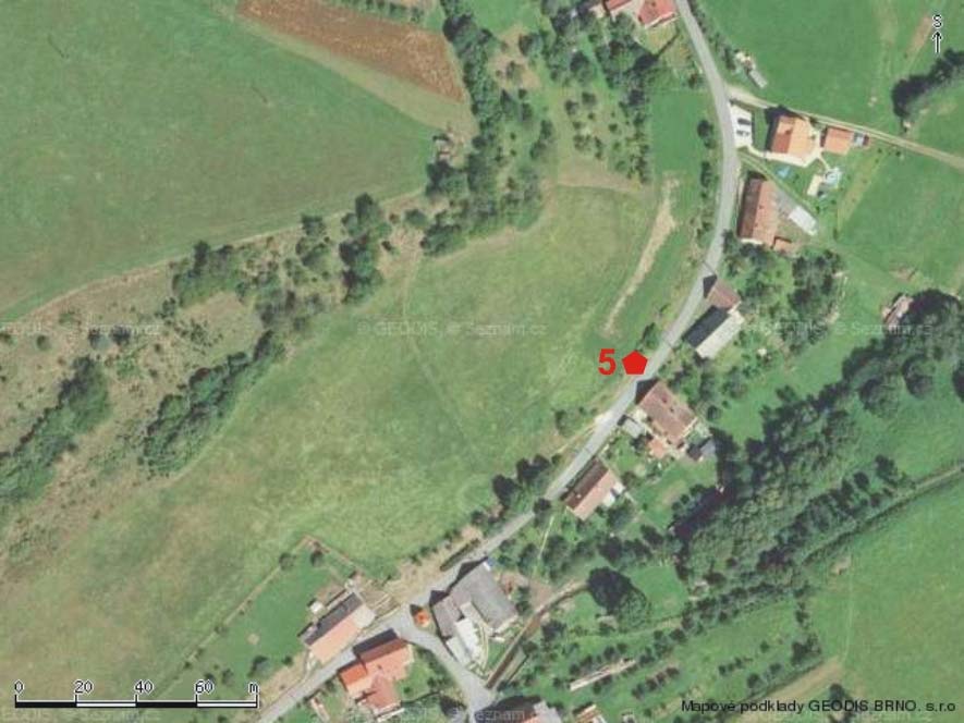 Lokalizace sesuvného území 5 Česká Ves (Podklad Seznam/Mapy)