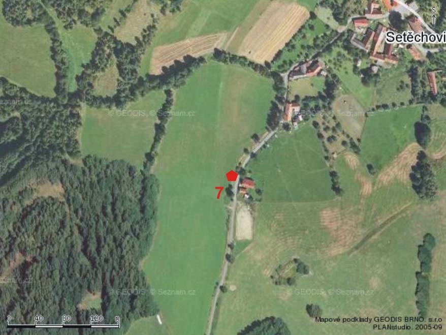 Lokalizace sesuvného území 7 Setěchovice (Foto Seznam/Mapy).