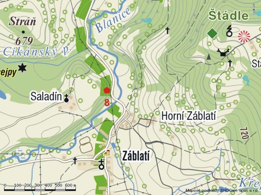 Lokalizace sesuvného území 8 Záblatí (Podklad Seznam/Mapy).