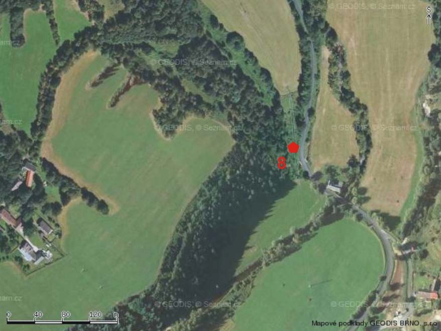 Lokalizace sesuvného území 8 Česká Ves (Podklad Seznam/Mapy).