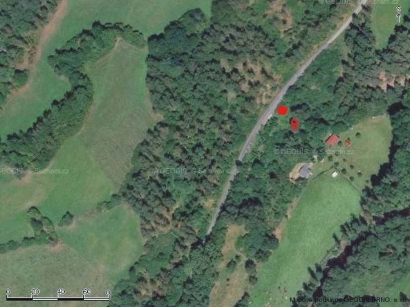 Lokalizace sesuvného území 32 Javorník, Zálesí (Foto Seznam/Mapy).