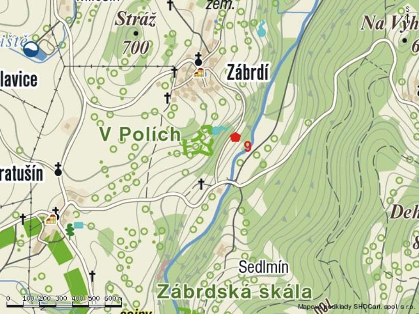 Lokalizace sesuvného území 9 Zábrdí (podklad Seznam/mapy.cz).