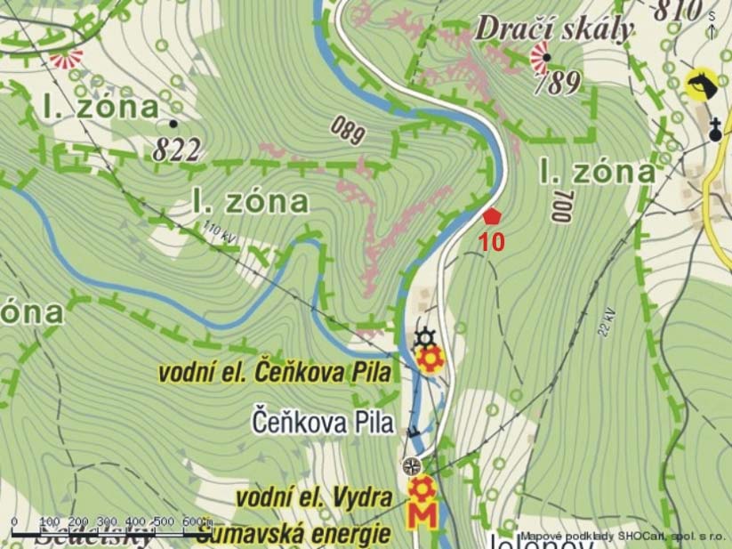 Lokalizace sesuvného území 10 Čenkova pila (podklad Seznam/mapy.cz).