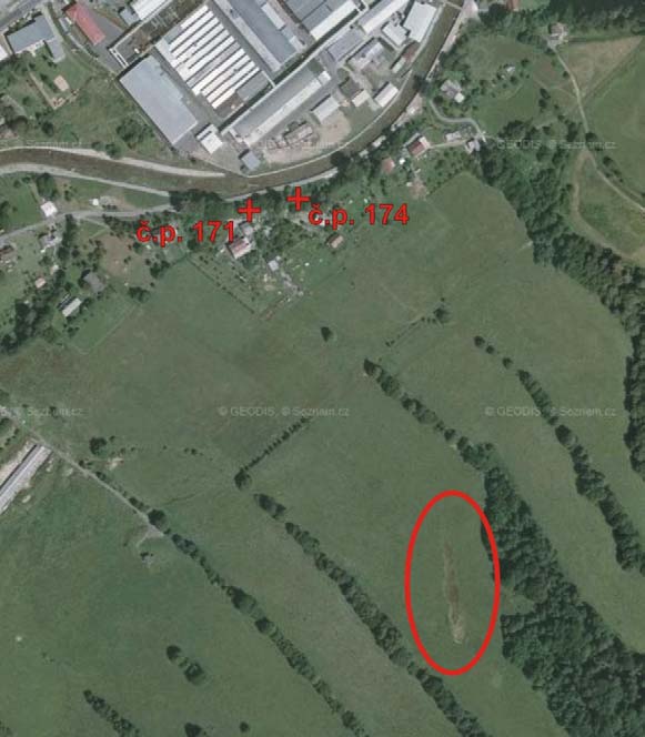 Lokalizace sesuvného území 9 Česká Ves (Podklad Seznam/Mapy).