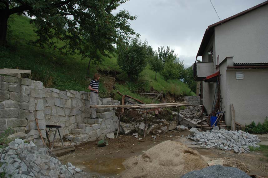 Čelo akumulace o mocnosti 1 m zastavené o objekt č. p. 35,