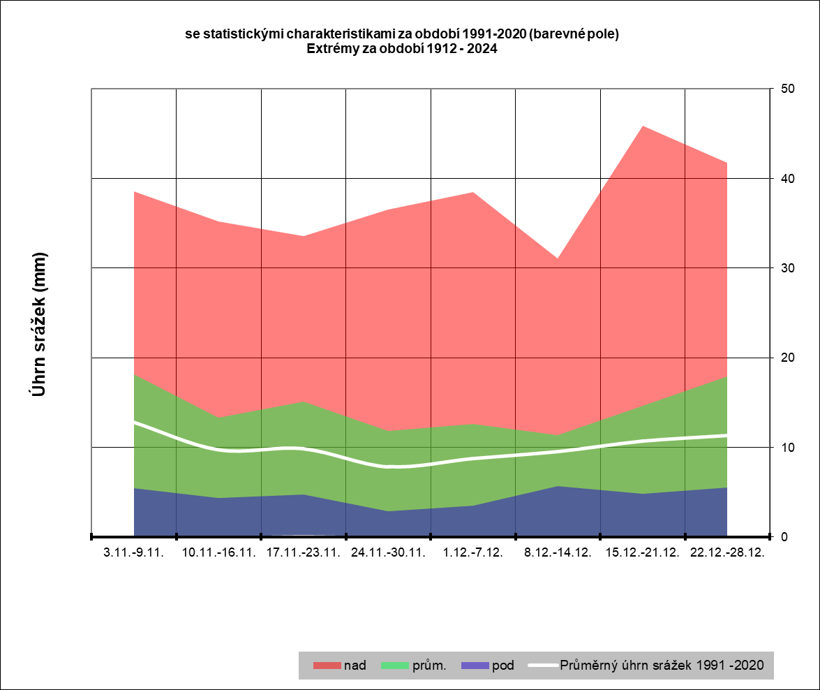 | Průměrný úhrn srážek v ČR v tomto období: | 40 mm |