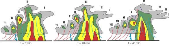 často propagácia búrkového systému proti vektoru ťahu samotných buniek. Takýto