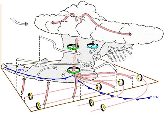 spôsobmi. Prvý z nich sa viaže na supercelulárne búrky. Podľa Markowski-Richardson,