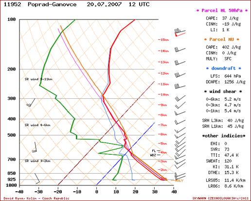 vhodným prediktorom hlavne pre krúpotvorné búrky Manzatto (2003). Pre