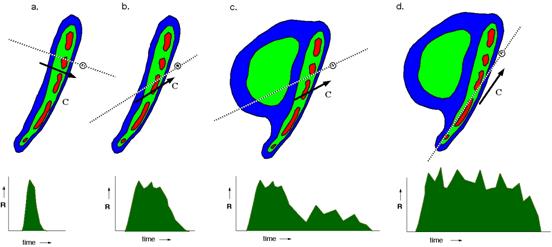 v horných diagramoch) a tzv. „train effect“ (prípad d.). Prevzaté a