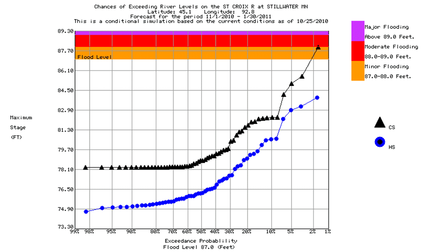Americká National Weather Service dlouhodobě provozuje systém ESP, který je založen na simulaci variant historických výskytů a kombinací meteorologických prvků (teploty vzduchu a srážek), které jsou použity jako scénáře „co by se stalo když?“. Na vývoj odtoku má totiž, kromě meteorologických vstupů, velmi významný vliv i aktuální stav povodí, jeho nasycení. Pokud by tedy dnes spadly stejné srážky jako třeba v roce 1972, odtok z povodí by se pravděpodobně poněkud lišil od toho pozorovaného v daném roce, a to právě díky jiné nasycenosti, jiné výchozí situace. Vliv nasycení povodí přitom v čase klesá, takže například za měsíc se již nedá vystopovat. Tento přístup se osvědčil především v oblastech s výrazným ročním chodem průtoků a tam, kde je před suchým létem nutné vytvořit zásoby ve vodních nádržích.