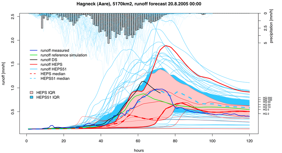 Odlišnou strategii tvorby pravděpodobnostní předpovědi, založenou na simulaci několika variant předpovědi srážek, které pocházejí z takzvaných ansámblových předpovědí některých me-teorologických modelů, využívají dva mezinárodní projekty EFAS a MAP-DPHASE. EFAS (European Flood Alert System) je vyvíjen a zkušebně provozován výzkumným centrem Evropské Unie JRC v italské Ispře. EFAS využívá střednědobé meteorologické předpovědi ECMWF (Evropské centrum pro střednědobou předpověď počasí v Readingu ve Velké Británii) a COSMO-LEPS (německého předpovědního modelu). Meteorologické vstupy tak pokrývají až období 15 dnů. Cílem systému EFAS je poskytnout předběžné upozornění na nebezpečný povodňový vývoj pro národní hydrologické služby, tedy v ČR pro Český hydrometeorologický ústav, tak, aby byly dostatečně připraveny na povodeň a její zvládnutí.