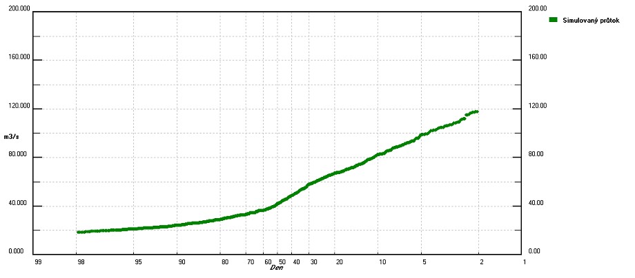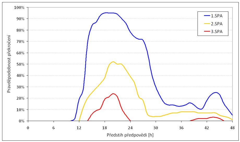 Graf časového vývoje pravděpodobnosti překročení – graf zobrazuje časový průběh pravděpodobnosti překročení prahových průtoků nebo vodních stavů.