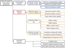 Zdrojů nejistoty v hydrologickém modelování je velké množství. Jejich genetické členění včetně podrobného popisu jednotlivých prvků uvádí například Daňhelka [2007]. Úplné kvantitativní vystižení celkové nejistoty není možné. Proto se většina prací, zabývajících se touto problematikou, omezuje pouze na jednotlivé zdroje nejistoty nebo na výběr několika nejvýznamnějších faktorů. Vyhodnocením úspěšnosti hydrologických předpovědí, bylo v mnoha studiích potvrzeno, že největším zdrojem nejistoty je kvantitativní předpověď srážek (QPF). V podmínkách ČR toto platí ještě výrazněji, protože většina předpovědních profilů uzavírá povodí, které leží v pramenných oblastech. Při zachování předstihu předpovědi 48 hodin pochází většina objemu odtoku v tomto časovém horizontu ze srážek, které dosud nebyly změřeny a musí být obsaženy v meteorologické předpovědi (QPF), (Vlasák [2010]). Z těchto důvodů je při tvorbě pravděpodobnostní hydrologické předpovědi nejčastěji uvažována pouze nejistota QPF. Existují sice metody na určení nejistoty parametrů modelu nebo jeho počátečních podmínek (nasycenosti povodí na počátku výpočtu), ale v současné době se v operativní hydrologii prakticky nepoužívají.