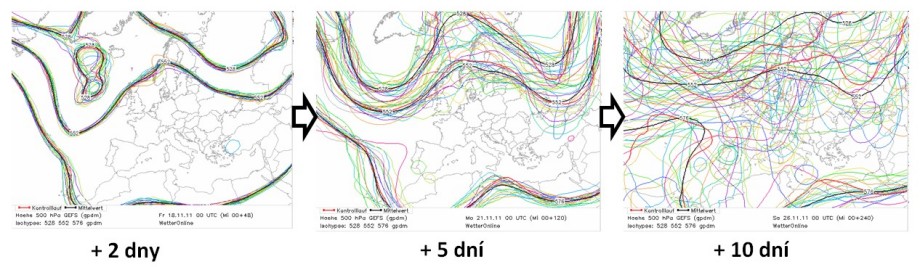 ECMWF – hlavní varianta modelu Evropského centra ECMWF, EUE pravděpodobnostní předpověď