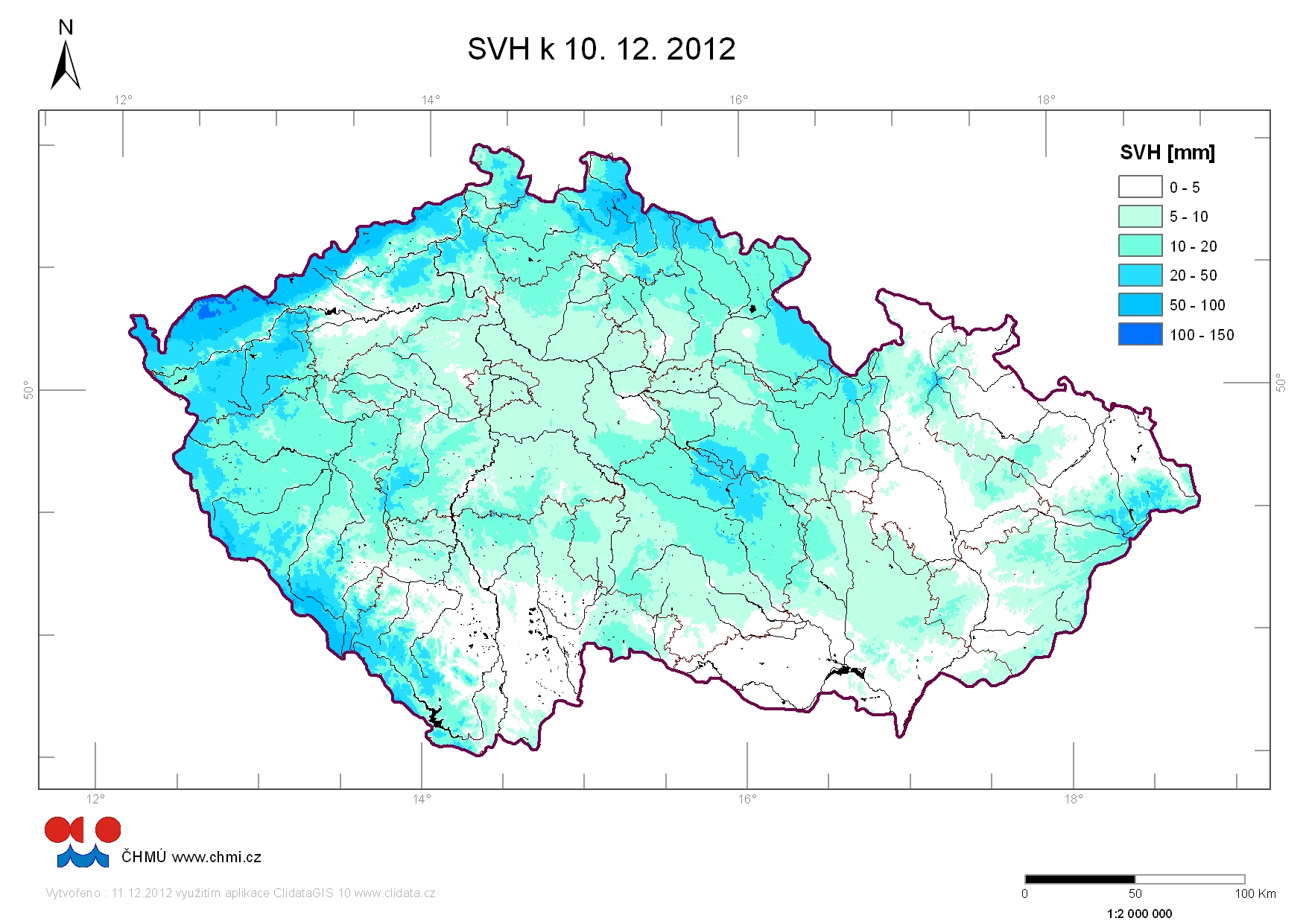 Odhad celkového množství sněhových zásob na území ČR k 10.12.2012 činí cca 0,97 miliardy m3, což představuje v průměru cca 12,3 mm ( 12,3 litrů na jeden metr čtvereční).