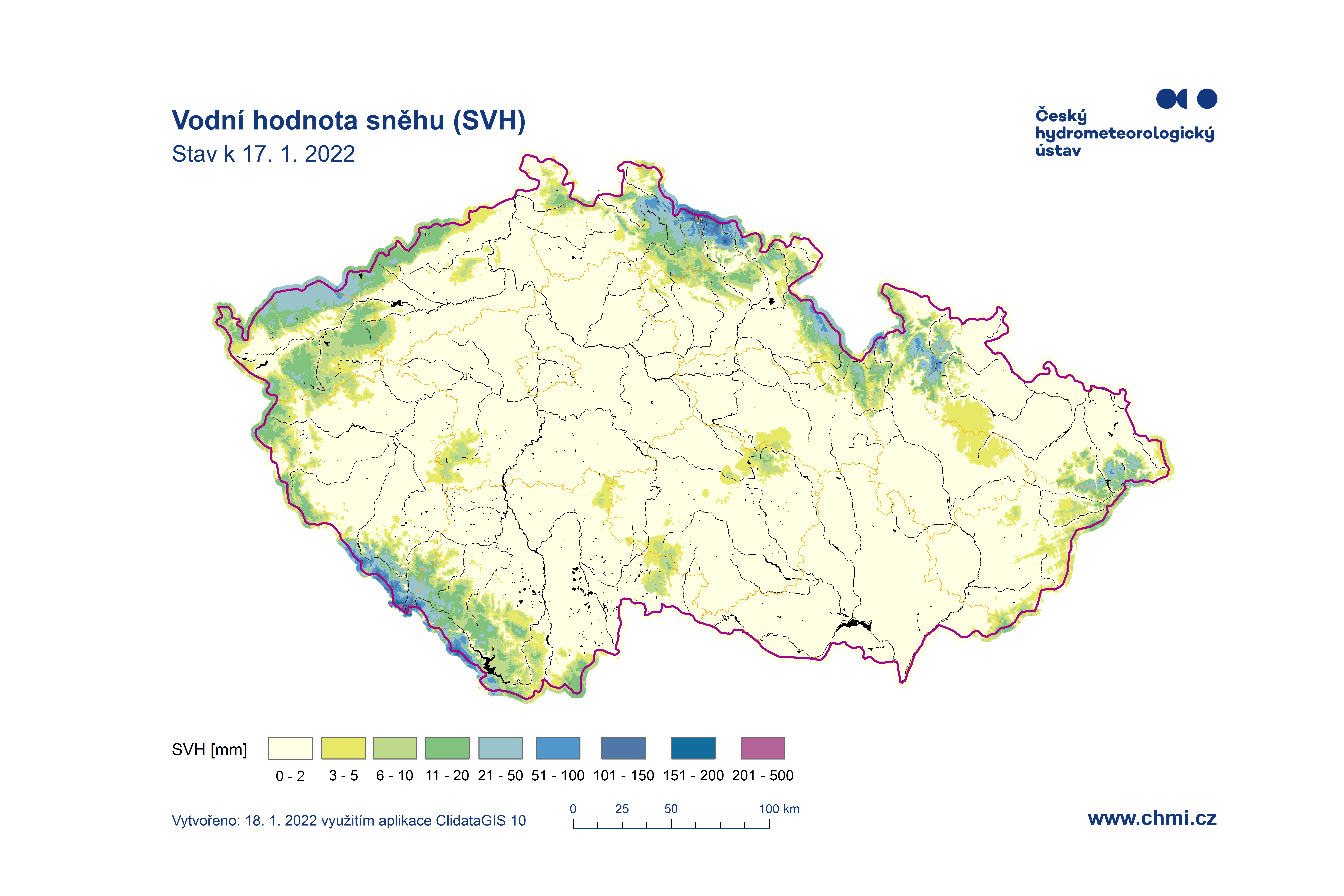 Odhad celkového množství vody ve sněhové pokrývce na území ČR k 17. 1. 2021 činí cca 0,245 mld. m3, což představuje v průměru cca 3,1 mm (3,1 litru na jeden metr čtvereční).